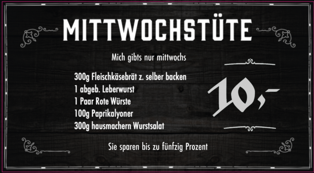 Genießen Sie auch unsere Imbissprodukte oder eines der wöchentlich wechselnden Tagesgerichte.