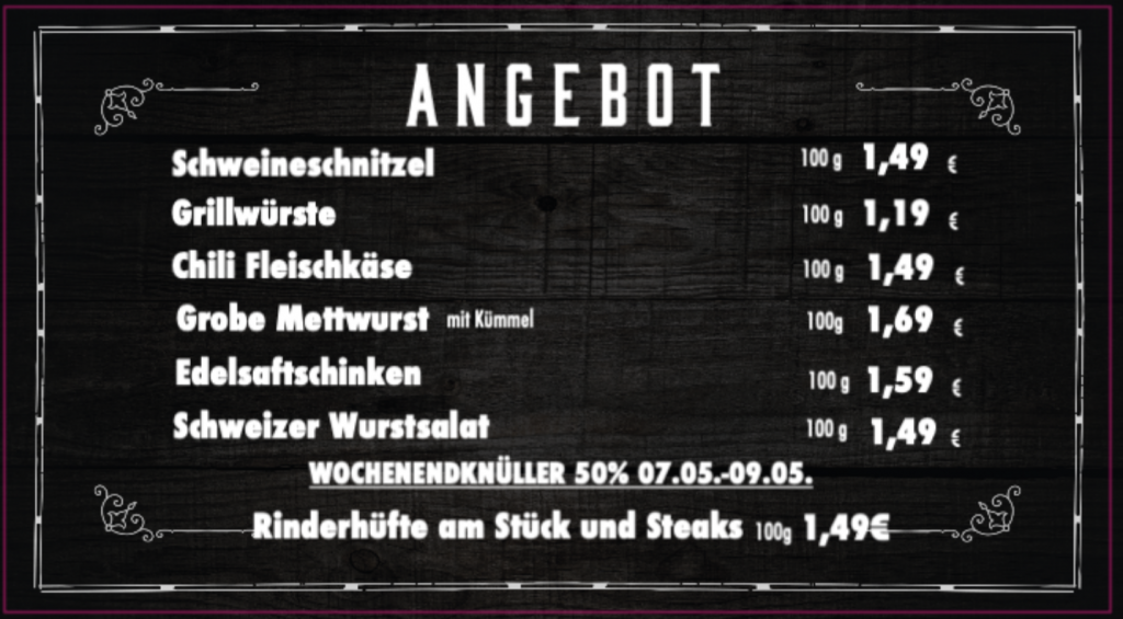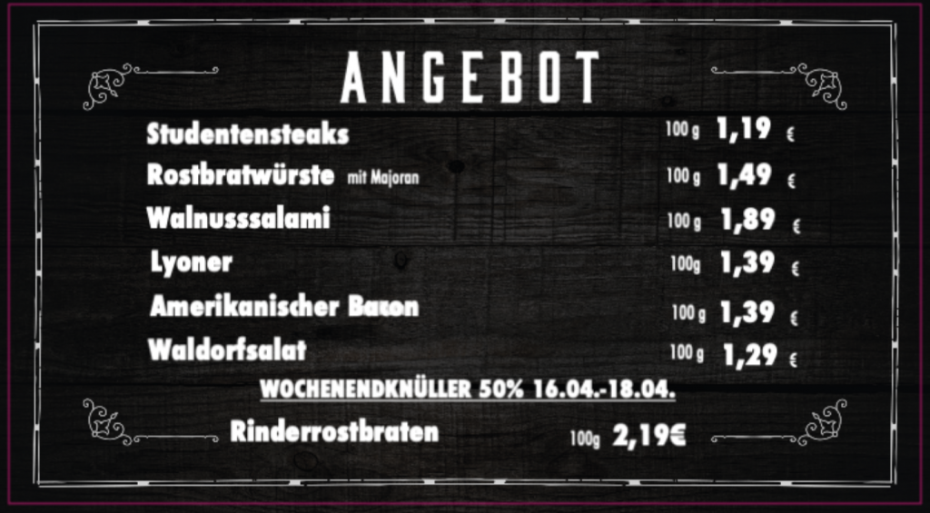› Eigenes Fleisch- und Wurstsortiment